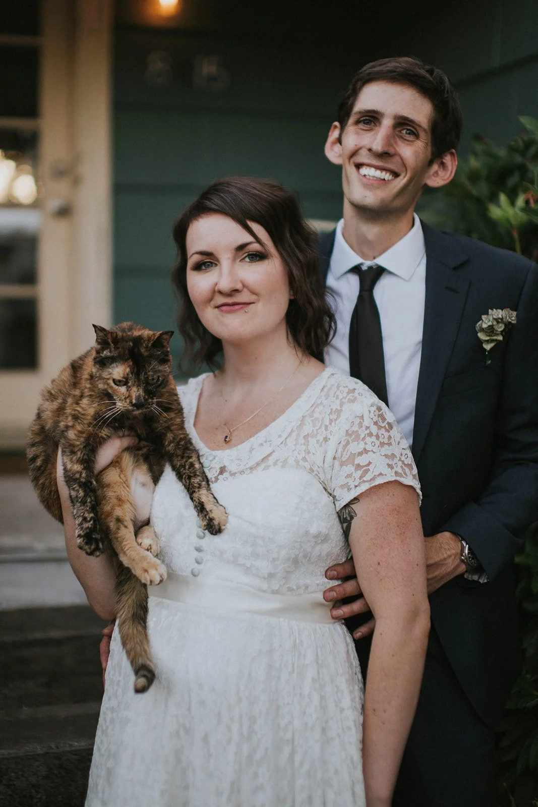 Cat is amazing! Her photos of our sweet little backyard wedding are so perfect. She was super communicative and responsive to all of my millions of questions during the whole lead up to our wedding. She checked in with me consistently throughout the whole day, making sure she was getting the photographs that I wanted. She legit stopped to talk to all of my guests, making them all comfortable before photographing them. She was 110% on board for my 'photos with my cat' idea, photos that I TREASURE. And she checked in with me before leaving to double check that I got everything I wanted, even though she was already over her time and absolutely did not have to! All on the hottest day of the year! Hire this girl!
